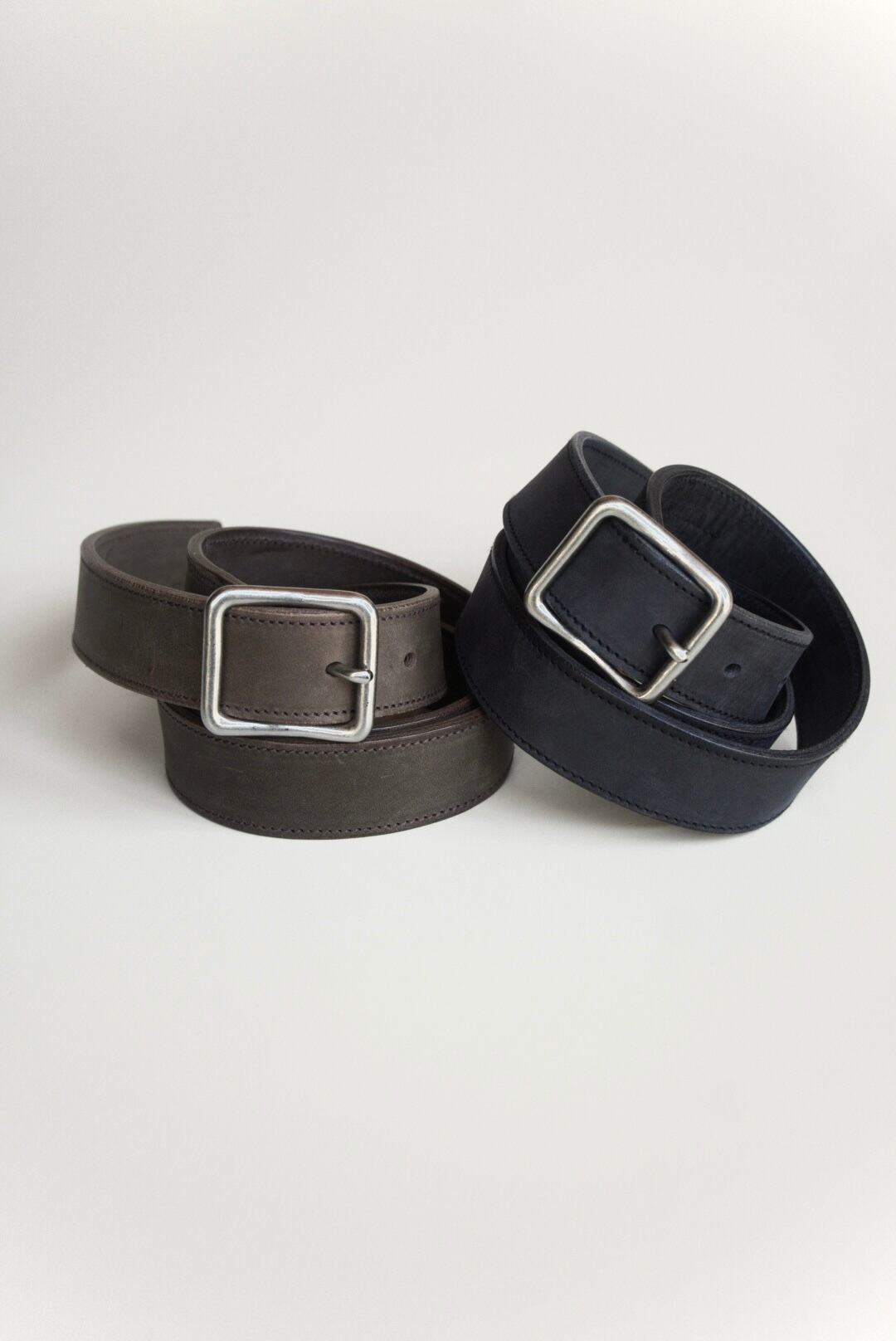 イタリア産のスムースレザー製ベルト。シルバーメッキ仕上げのブラスバックル。ブラック、ブラウンの2色展開。 レザー | ブラス シルバーメッキ仕上げ S | 全長 : 102cm | 26-31inch | 幅 : 3.0cm M | 全長 : 112cm | 30-35inch | 幅 : 3.0cm L | 全長 : 122cm | 34-39inch | 幅 3.0cm