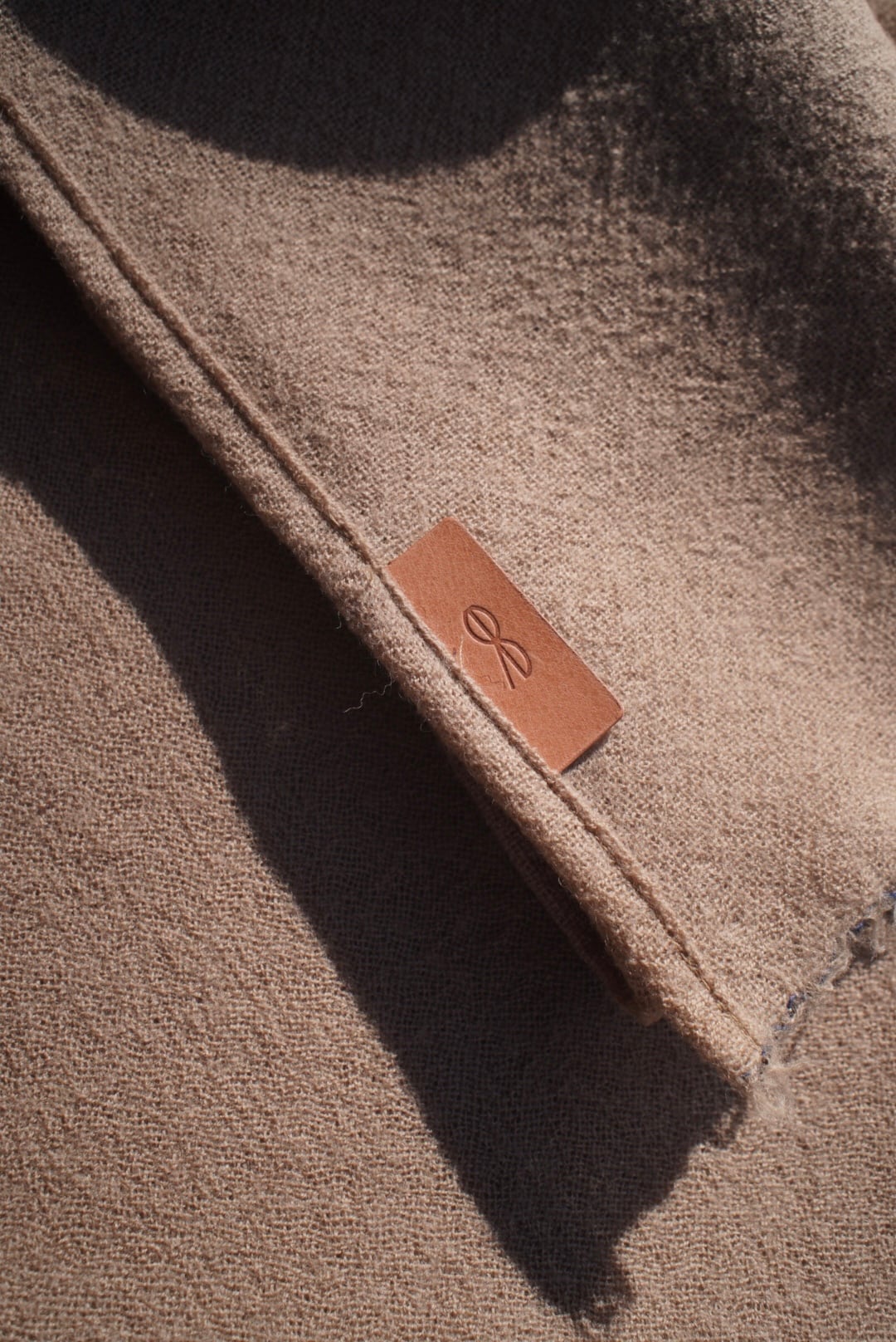 繊細な薄さと高い保温性を兼ね備えたウールストール。ロゴがエンボスされたレザータグ付き。 ウール 100% ベージュ 60 × 140cm