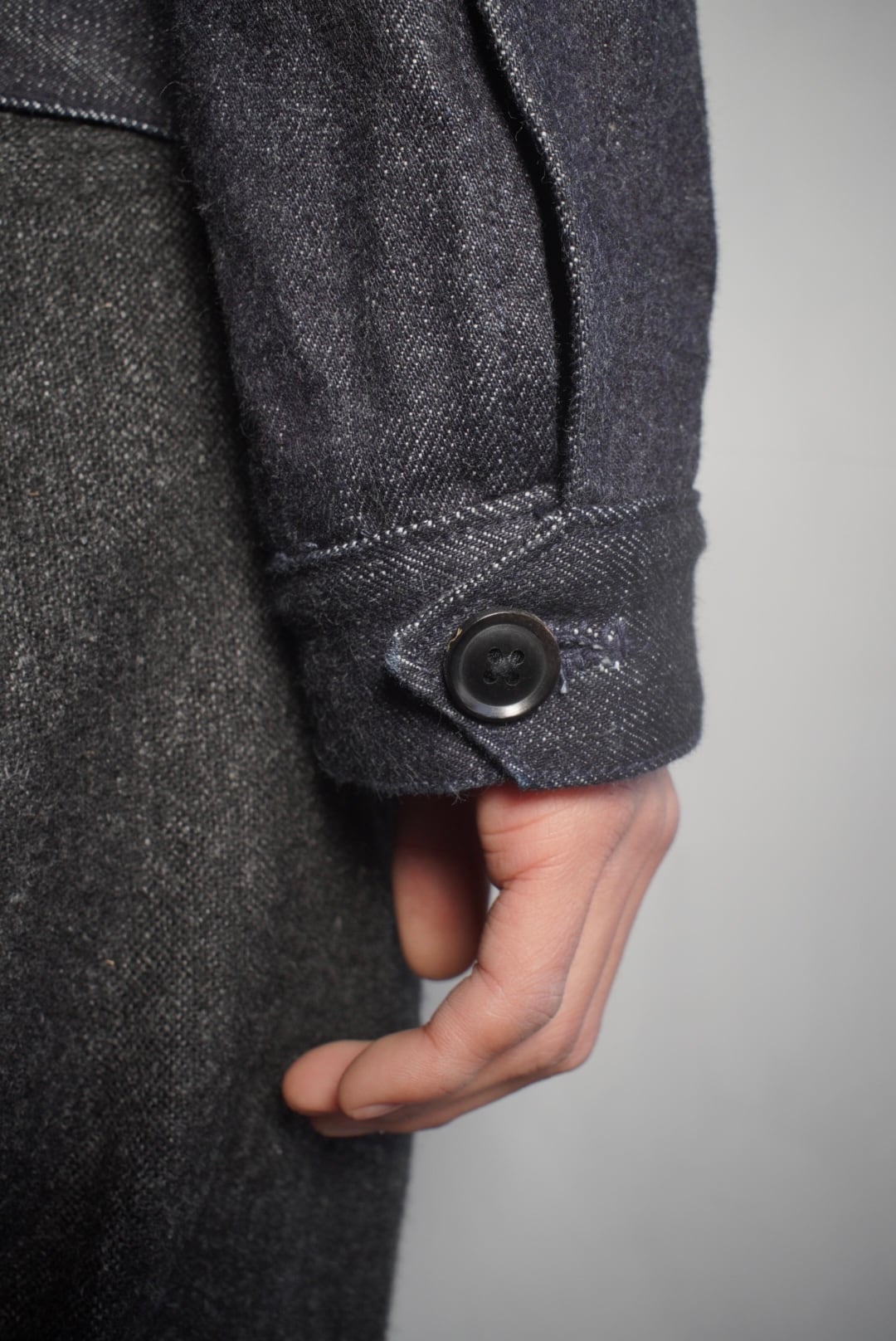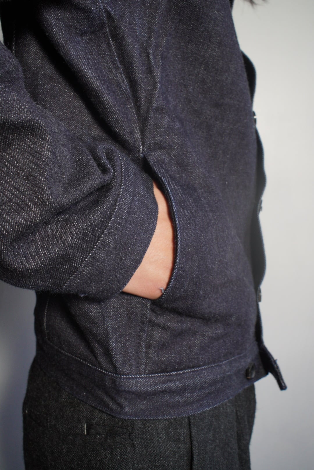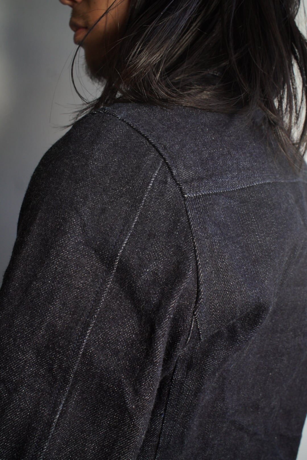 ベーシックなスタイルには欠かせないデニムジャケットを再解釈したプロダクト。エッジを効かせたカッティングと、無駄を削ぎ落としたデザインがモードな印象を与えます。ワードローブの主役となるアイテムとして仕立てました。